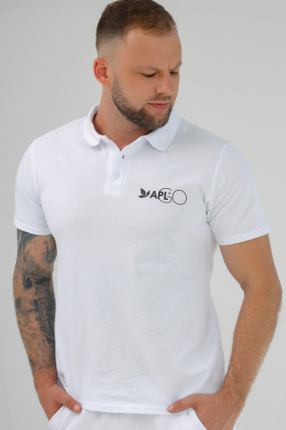 Классическая белая рубашка с золотой вышивкой "APL" поможет создать стильный образ успешного бизнесмена.