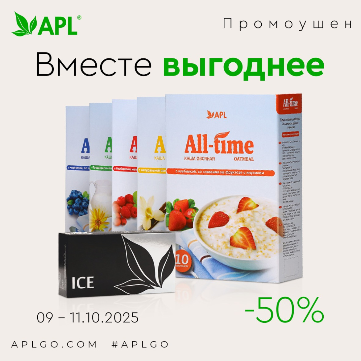 Отмечаем Международный день каши с двойной пользой! С 9 по 11 октября покупайте любимые полезные каши и получайте легендарное драже ICE со скидкой 50%!
